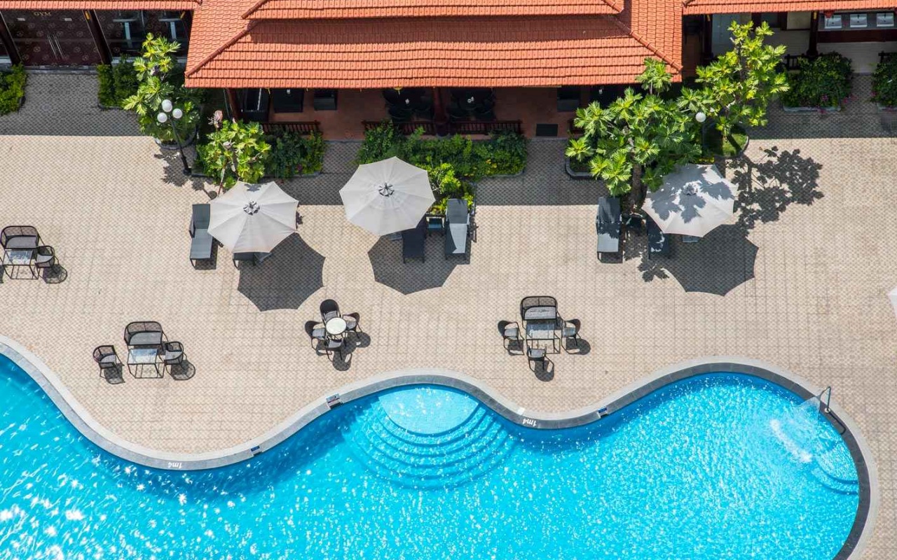Bể bơi ngoài trời mang đến không gian thư giãn mát lành ngay giữa lòng thành phố Cà Mau – điểm nhấn hoàn hảo cho kỳ nghỉ trọn vẹn.