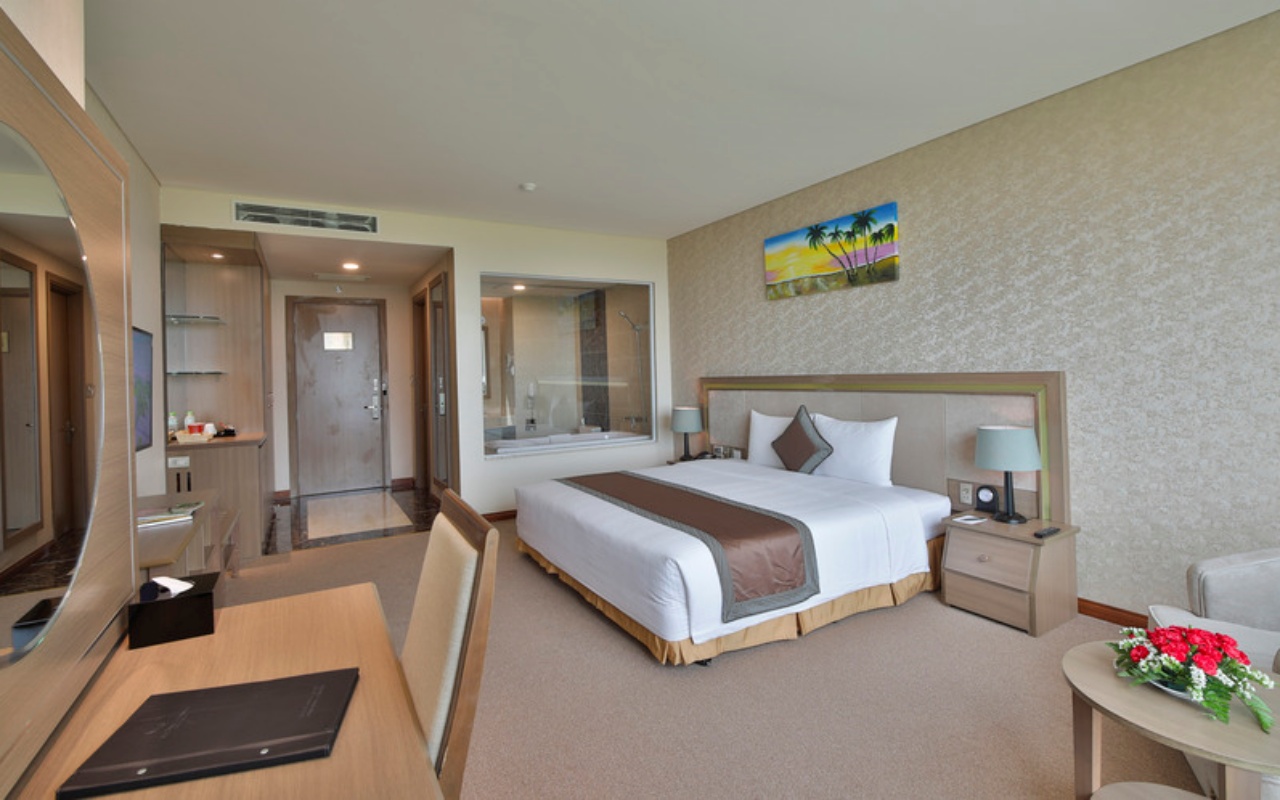 Mỗi phòng đều được trang bị đầy đủ tiện nghi cao cấp, cửa sổ lớn đón ánh sáng tự nhiên, mang đến cảm giác thoải mái và thư giãn tuyệt đối cho du khách.
