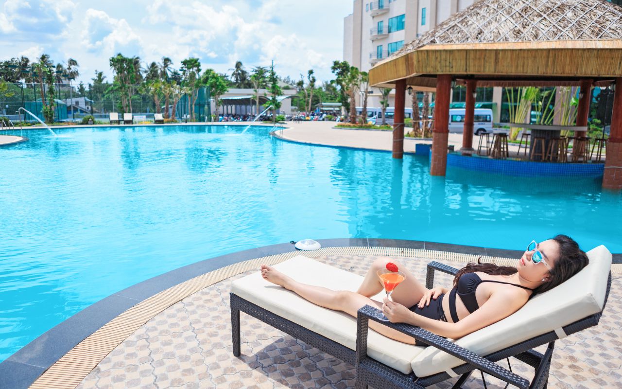 Bình Thủy Bar cạnh hồ bơi: thư giãn giữa không gian xanh & nước.