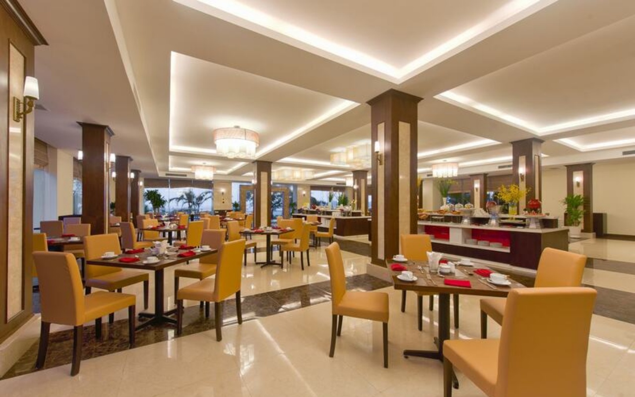 Phục vụ buffet sáng cùng thực đơn Á – Âu đa dạng, đặc biệt là các món hải sản tươi ngon đặc trưng của biển Nhật Lệ. Không gian rộng rãi, phù hợp cho gia đình và sự kiện.