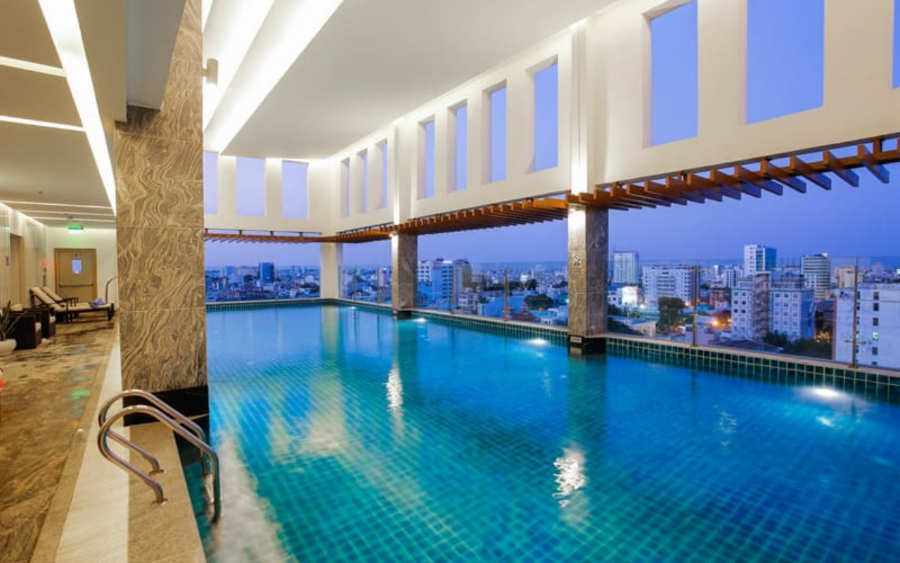 Bể bơi được đặt trên tầng cao của khách sạn, mang đến tầm nhìn đẹp ra thành phố. Đây là nơi lý tưởng để thư giãn sau một ngày khám phá Sài Gòn.