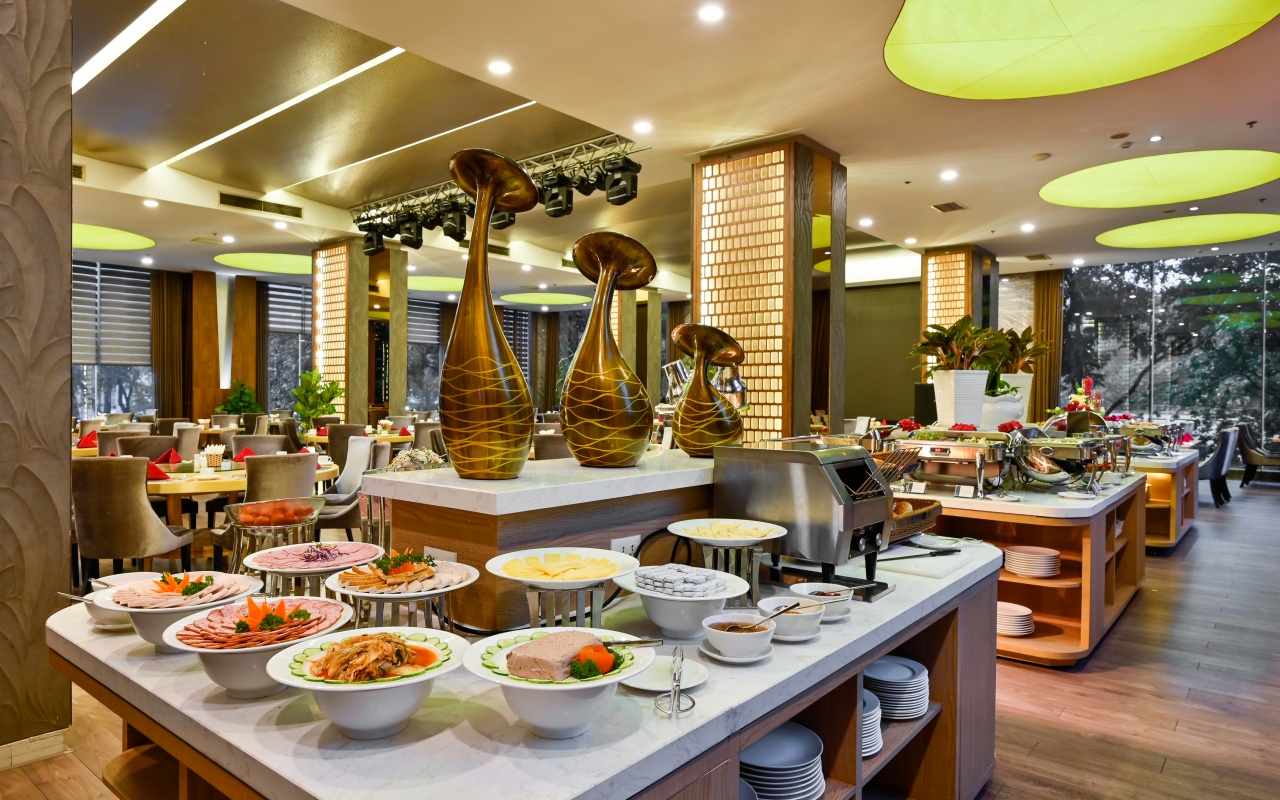 Nhà hàng phục vụ buffet sáng cùng thực đơn phong phú với nhiều món ăn Á – Âu hấp dẫn.